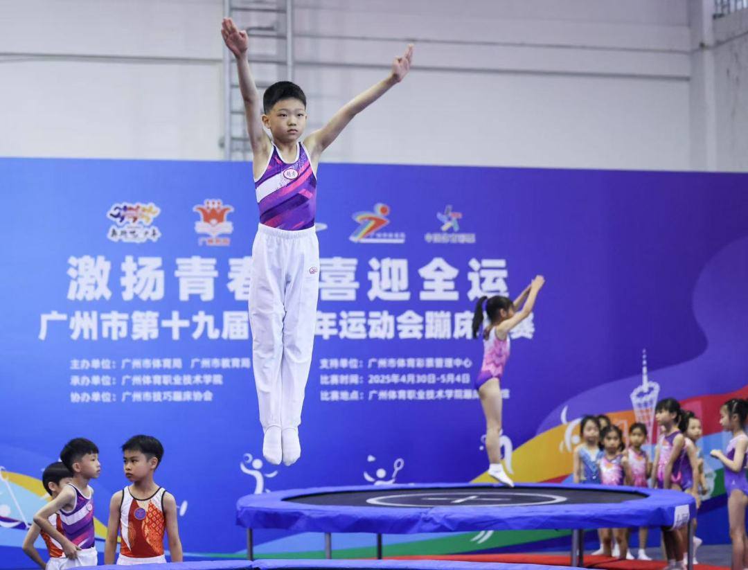 5月4日,广州市第十九届青少年运动会蹦床比赛在广州体育职业技术学院落下帷幕,比赛共持续5天,全市10支队伍共计366名运动员参与角逐,报名人数和参赛队伍数量均创历届之最。本次赛事分组别进行了男、女子的网上、单板、小蹦床等小项的角逐,最终,荔湾区、白云区、番禺区三队获得团体总分前三名,赛事还颁发了体育道德风尚奖。