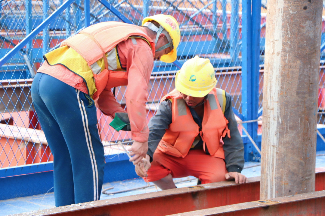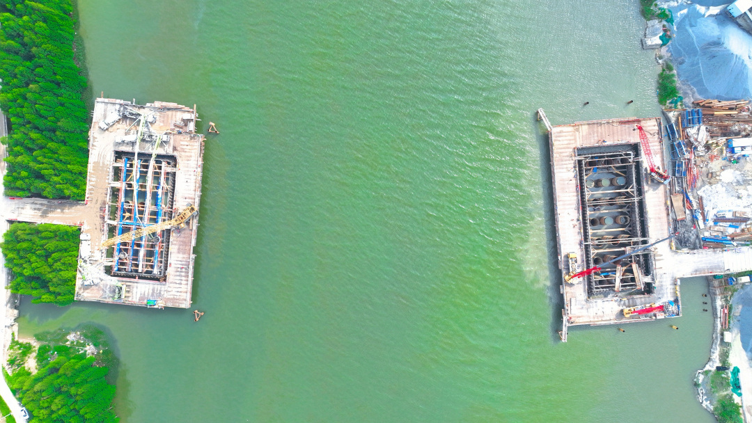 在封底施工的关键阶段,项目团队制定“多点分层推进”专项工艺,科学规划48个浇筑点位,分步开展混凝土浇筑,浇筑方量总计达1520立方米。为确保施工质量,项目团队构建了全方位、无死角的监控体系,施工人员24小时坚守岗位,不间断对围堰变形、水位波动及混凝土流动状态进行实时监测,精准把控每个施工环节,确保封底混凝土的密实度和平整度达到高标准,为承台主体施工奠定坚实基础。