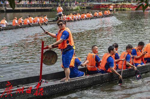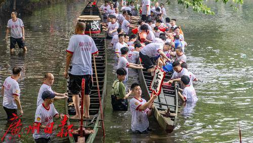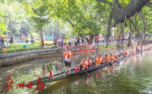龙船出水后村民们在荔湾湖中进行试水试扒。