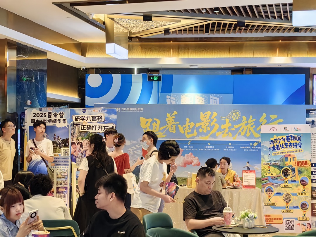 除了看电影之外,“跟着电影品美食”“跟着电影去旅游”等主题活动也在多家广州影院举行。各大影院结合电影推介广州旅游景点和丰富美食,促进电影产业与文旅产业的深度融合。此外,文创集市、美食品尝、有奖互动等活动丰富多彩,吸引不少市民在观影之余驻足参与,活跃假期影院气氛。
