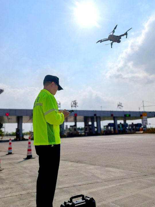 陈泽煦又一次握紧遥控器熟练操作,目送好搭档“银翼”腾空而起。这台四旋翼无人机是他开展巡查的得力助手,它灵巧穿梭在路面或服务区、站场上空,以高清摄像头让实况尽收眼底。