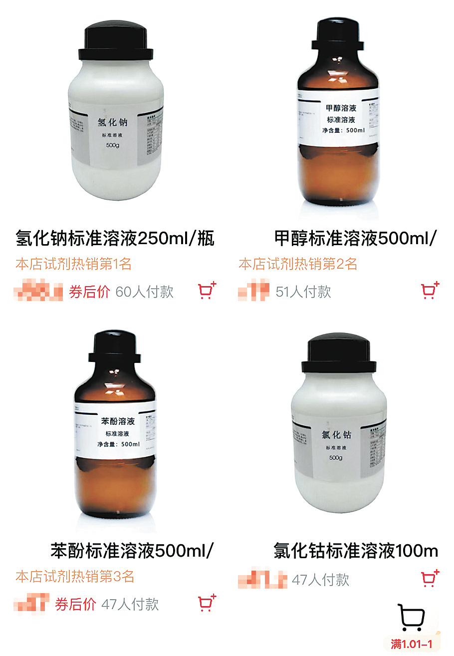 一位销售矿物产品的商家告诉记者:“目前的化学试剂行业比较乱,你个人要买的话不推荐。”对方还提醒,部分商家会通过伪装商品名称、暗语交易(如“特殊试剂”“高纯度试剂”等搜索词)、建立店铺粉丝群售卖等方式来逃避监管。