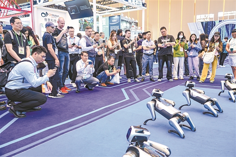 在广交会服务机器人专区里,可爱有趣的机器狗引来了中外客商的围观,大家纷纷拿出手机拍摄记录。