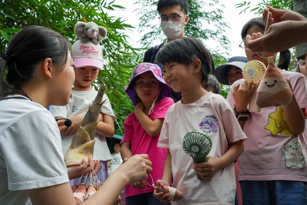 5月2-3日,林岳吊丝丹竹笋美食文化节系列活动——亲子研学游活动举行,30组亲子家庭走进林岳吊丝丹竹笋种植基地,沉浸式体验竹笋挖掘,品尝特色笋宴。活动中,林岳吊丝丹竹笋推广大使麦钻玮还为孩子们讲解林岳吊丝丹竹笋的名字来由和独特之处,让更多人了解背后的文化内涵。“我很爱吃竹笋,以前妈妈带我吃过林岳吊丝丹竹笋,这次是我亲手挖竹笋,感觉自己挖过后,竹笋更好吃了。”来自广州的小罗同学说。