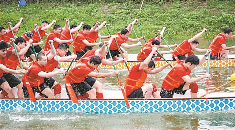 虽然距离端午节还有许多时日,但龙舟赛的“战鼓”声已在番禺新桥涌响起。近日,番禺区大龙街新桥村举办首届“新溪杯”龙舟赛,来自该村东、南、西、北坊的四支龙舟队水上竞渡,场面十分热闹。