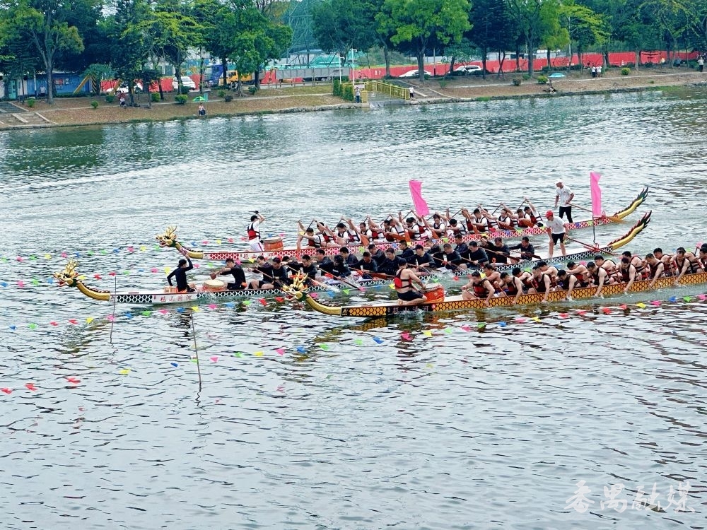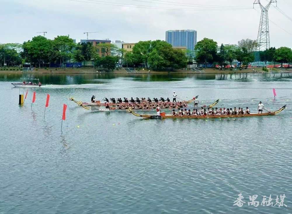 三艘龙舟激励比拼