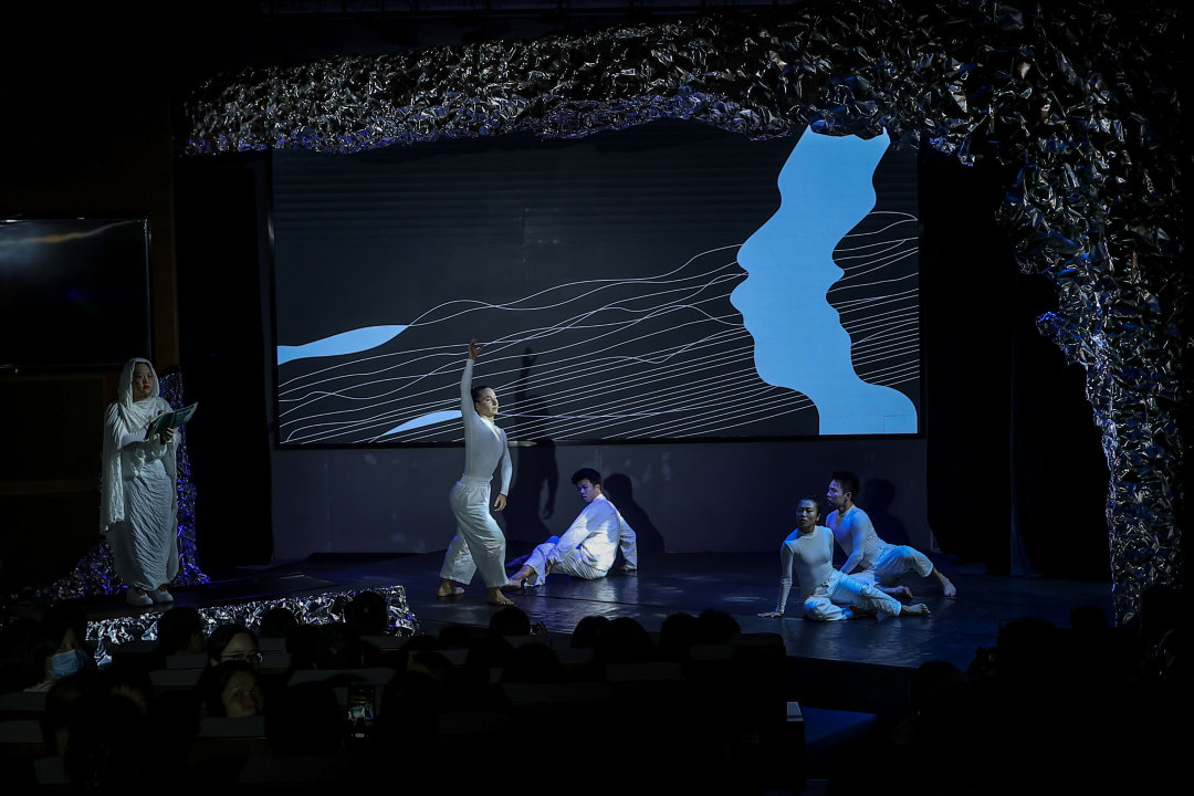 本届诗歌音乐会突破传统朗诵模式,以诗舞剧形式实现文学、舞蹈、戏剧、音乐的跨界对话。舞台设计师杨参以“窗”为视觉符号,创造一个内看外看的艺术空间,而灯光师阮仕登通过光影来表现剧情的氛围与情绪,将报告厅转化为沉浸式剧场;青年编舞艺术家肖智仁与宾少妍、昌立轲、Burova Daria等舞者一起创作,他们倾注热情,听取诗意的召唤,找到生命的对应影像,延伸向一个充满思想张力的鲁迅。
