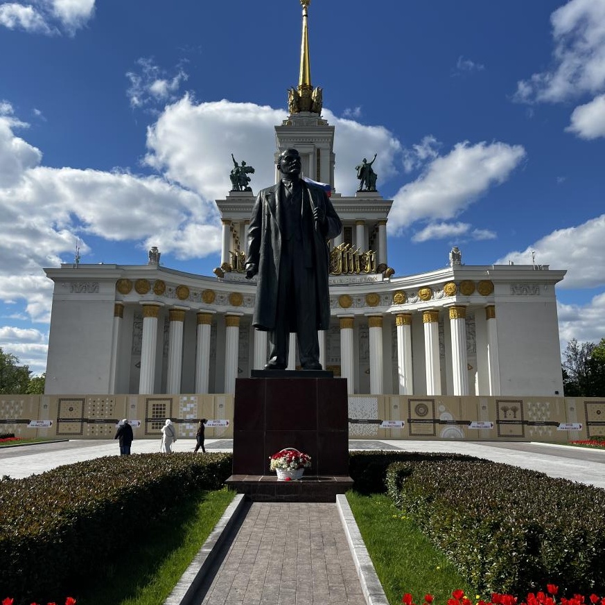 当地时间5月6日,位于俄罗斯首都莫斯科全俄展览中心前的列宁雕像。姜忠奇 摄