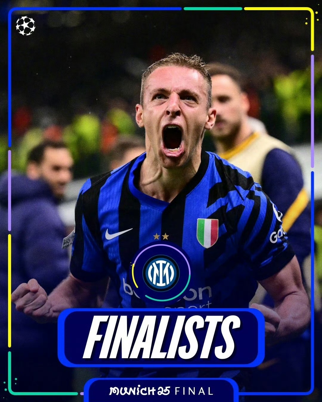 这是时隔两年再进决赛的国际米兰队史第7次闯进欧冠决赛,此前他们已经3次夺冠。本赛季欧冠,国米的表现也是很有说服力的,联赛阶段排名36强的第4位,在淘汰赛中也先后淘汰了拜仁和巴萨两大夺冠热门。国际米兰本赛季欧冠14场比赛总共打入了26球,追平了欧冠改制以来国米单赛季欧冠最多进球纪录(国米曾在2002—2003赛季欧冠16场比赛打入26球),当然,其中近1/4的进球都来自与巴萨的两场半决赛。同时,国米门将索默无愧今晨的全场最佳球员,他总共贡献7次扑救,还在最后阶段神勇地扑出了亚马尔的射门,成功护送球队挺进决赛。本赛季至今,索默在他参加的13场欧冠比赛中7次零封,也是本赛季欧冠零封次数最多的门将。