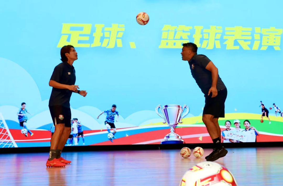 开幕式进行了足球、篮球的花样表演,广州闪电熊青训学院启蒙总监毛利蒂与昔日足球国奥队队员李健带来了精彩绝伦的足球秀,他们以精湛的球技征服了现场观众,为开幕式注入了强大的能量,让大家充分感受到了足球的魅力。该校学生也带来火热的街舞表演,当“街头篮球”遇上“街头舞蹈”,刚柔并济的舞步加上指尖旋转篮球,让现场更加炫酷。