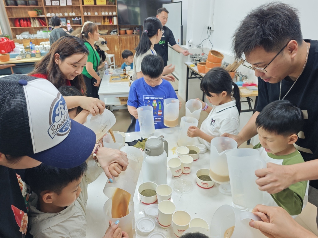 “现在还有茶叶采摘吗?”5月4日一大早,大雨刚歇,一位家长就带着孩子来体验采制茶。跟着专业的师傅学习采茶技巧,在近七十年历史的生产车间炒茶,收获从茶园到茶杯的全流程,感受传统制茶工艺的魅力,体验劳动的快乐与收获的喜悦,雨水也阻止不了体验的脚步。而在红旗小课堂,还有多种茶香手作创意项目,如制作茶香囊、茶香皂、茶香薰、擂茶、奶茶等。独一无二的作品从自己手中诞生,让茶香融入每一个角落,带走专属的茶香记忆。当然还有互动游戏集章,精美的小礼品,“红旗茶厂七大权益卡”。