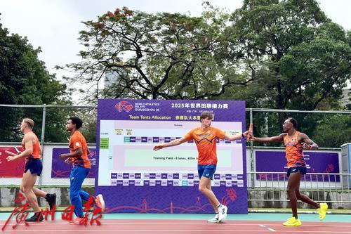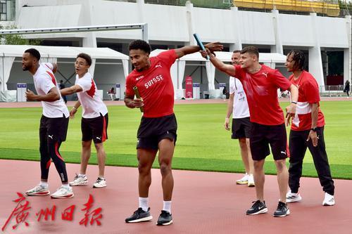 5月10日至5月11日,国际顶级田径赛事——世界田联接力赛将在广州天河体育中心开赛。5月7日下午,来自世界各地的精英运动员在天河体育中心副场进行赛前热身训练。