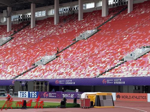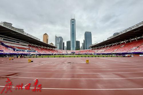 来自世界各地的运动员在天河体育中心进行热身训练。