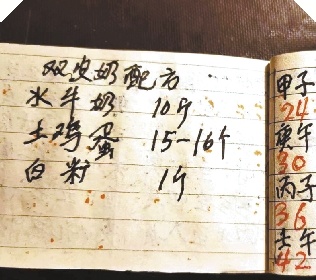 在一张发黄的纸页上,清晰记录着“双皮奶配方:水牛奶10斤、土鸡蛋15—16个、白糖1斤”,该配方将各原材料配比定型,据此配方制作的成品双皮奶具有香、甜、饫(油腻脂厚)的口感特点。