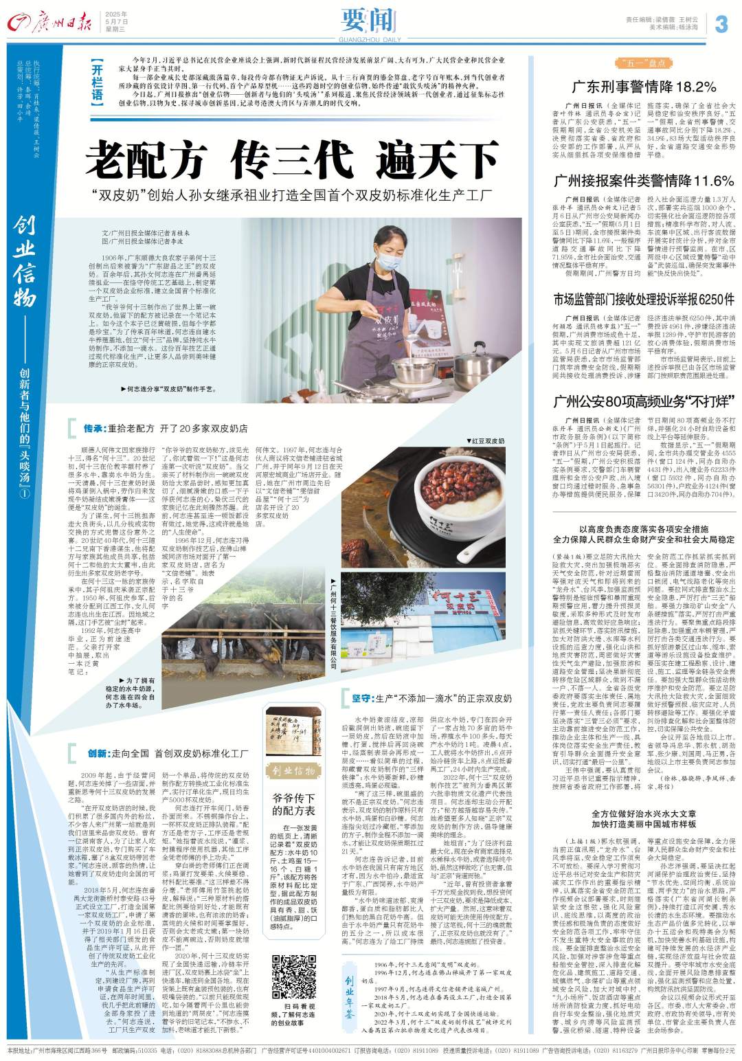 2020年,何十三双皮奶实现了全国快递运输,冷链车开进厂区,双皮奶裹上冰袋“坐”上快递车,输送到全国各地。现在货架上既有盒装预包装的,也有吸嘴袋装的。“以前只能现做现吃,如今隔着两千公里也能尝到地道的‘两层皮’。”何志连摸着爷爷的旧笔记本,“不掺水、不加料,老味道才能扎下新根。”