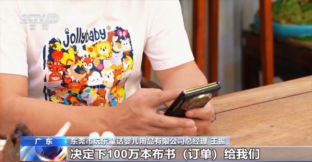 东莞市玩乐童话婴儿用品有限公司总经理 王振:到晚上12时许他们就发信息给我,决定在我们这里下100万本布书订单,当时我们大家非常非常兴奋。