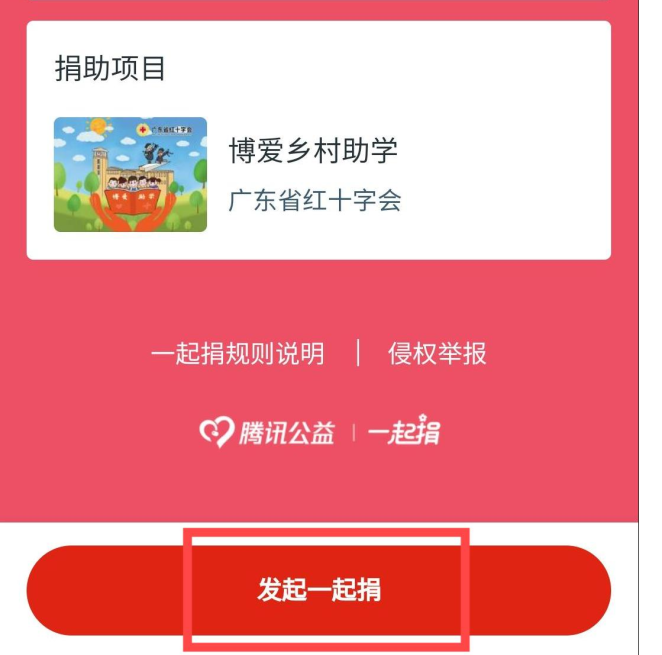 第五步:以上信息确认无误后,点击“发起一起捐”。