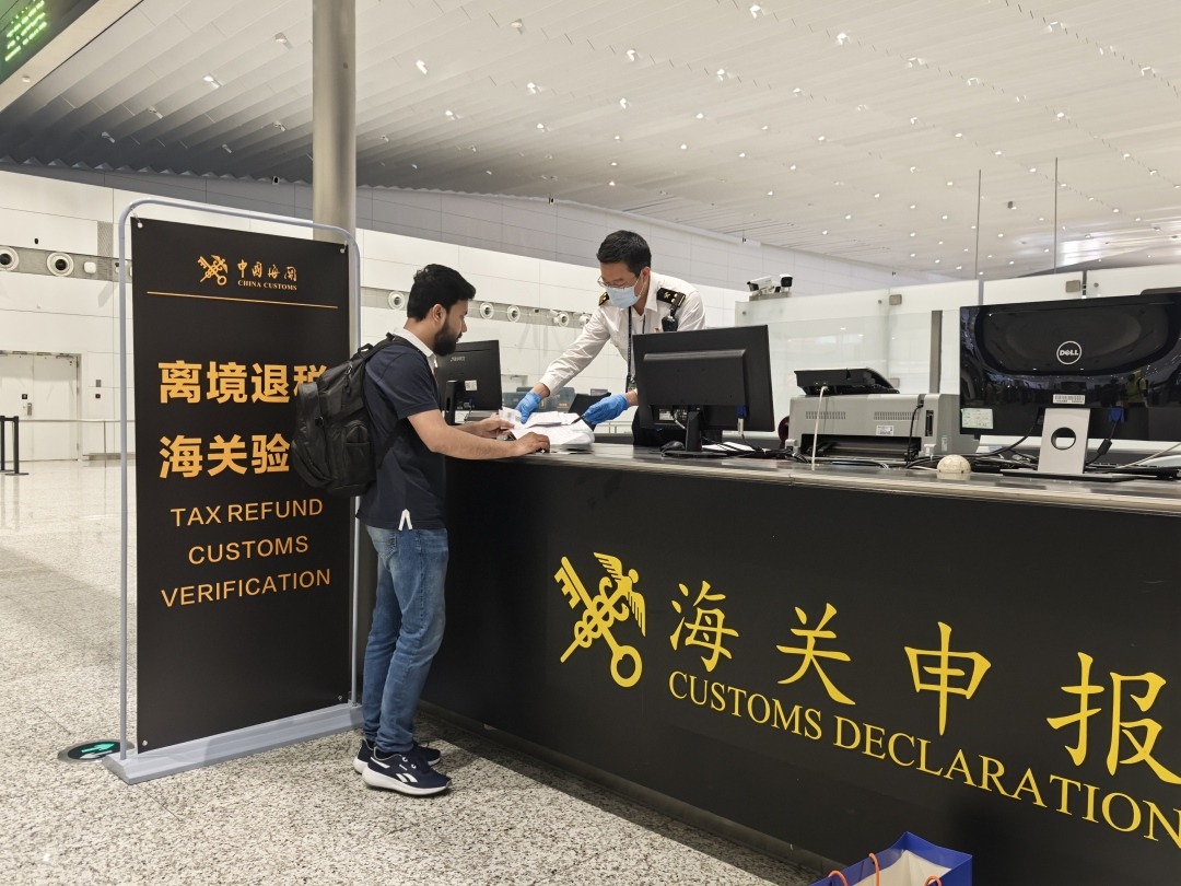 “业务忙的时段,可能会有3到4名旅客同时办理退税业务,我们充分运用智慧海关建设成果,依托信息化系统提升办事效率,每名旅客的平均等待时间不会超过10分钟。”杜泽强表示,办理离境退税业务的旅客仅需到出境海关申报台提供退税物品、《境外旅客购物离境退税申请单》、退税物品销售发票和本人有效身份证件,海关核验后即可完成退税。
