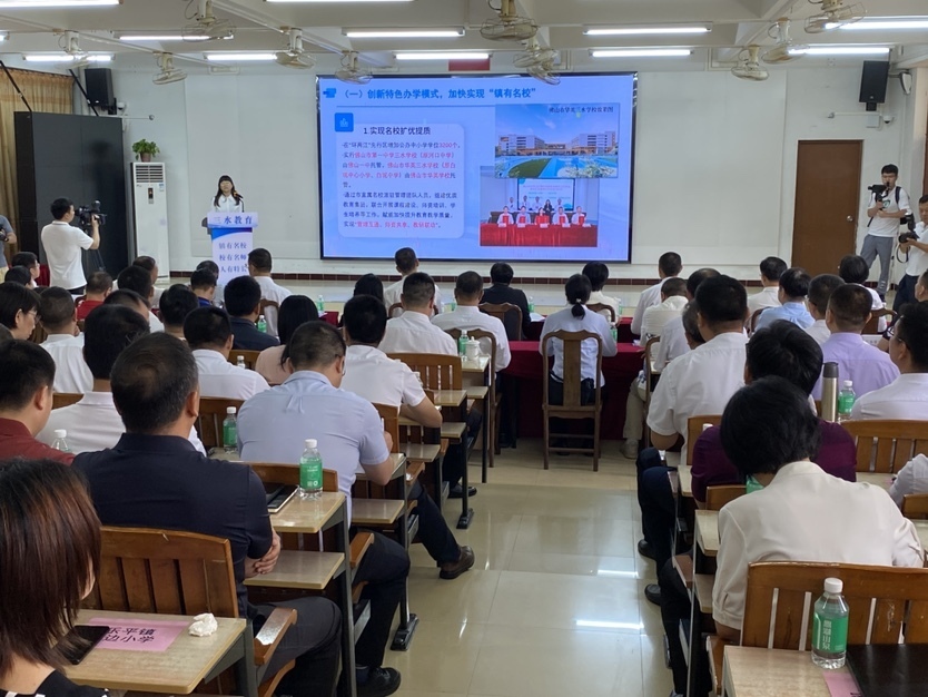 今年3月,三水在全市率先实施名校领航镇域教育高质量发展行动,明确要利用三年时间,通过实施校园升级焕新工程、名校扩优提质工程、名校长领航工程、名师雁阵工程、英才一体化培养工程、AI赋能教育创新工程、教育合作共建工程、全员强教育人工程等八大工程,在5个镇打造一所小学一所初中名校。
