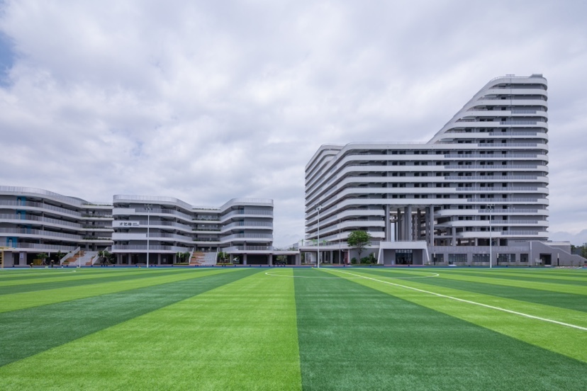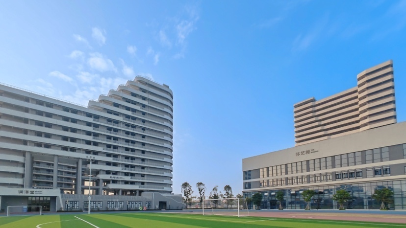 据介绍,佛山市文聚实验高级中学是一所全寄宿制民办高级中学,坐落于禅城区紫南文化旅游区内。学校占地面积约100亩,总投资约5亿元,建有10万㎡教学建筑群的生态校园。学校配备教学楼、实验室、录播教室、校园电视台、多功能报告厅、图书馆、体育馆、塑胶运动场、健身馆、恒温游泳池等全场景现代智慧教育空间。