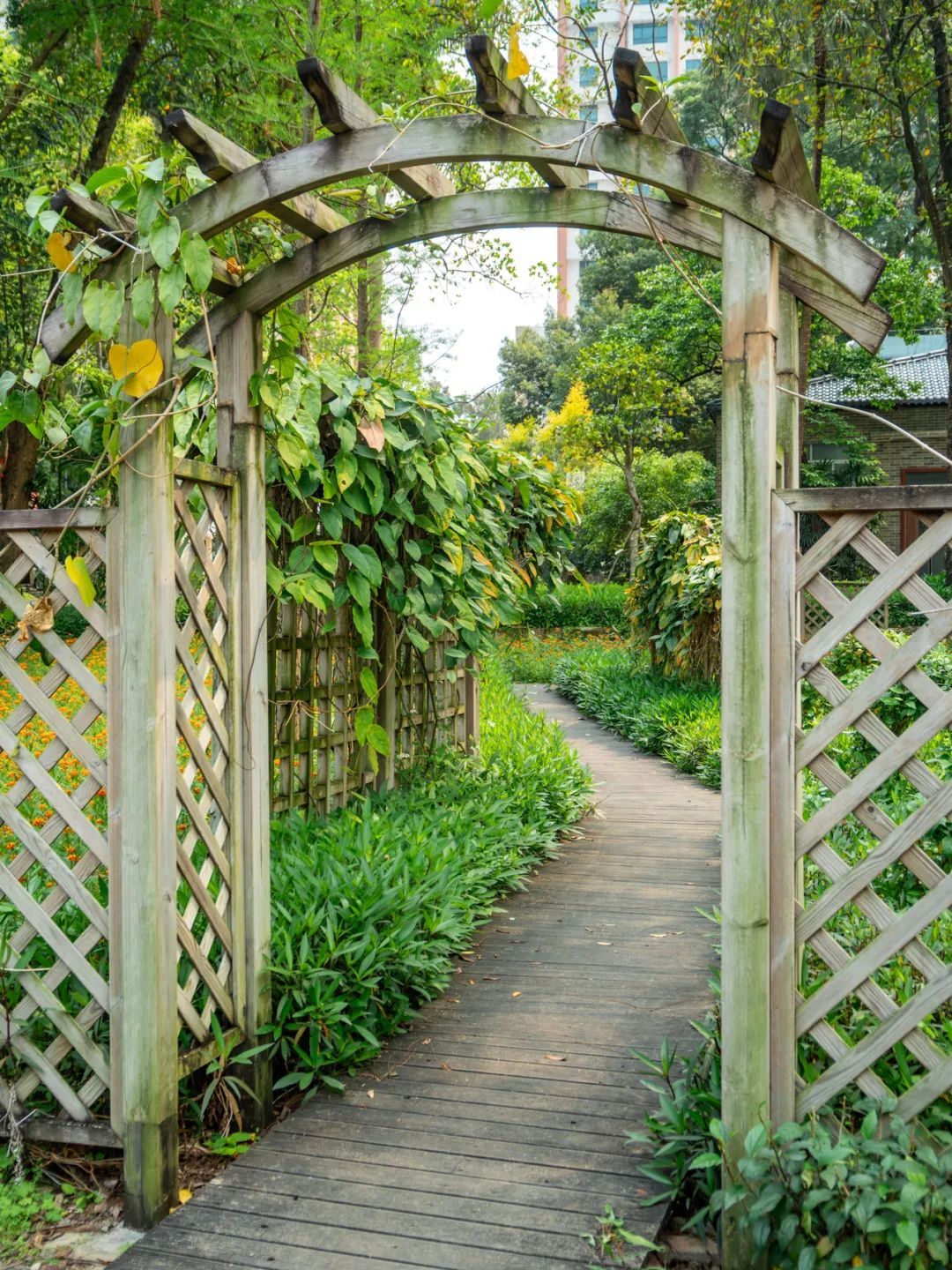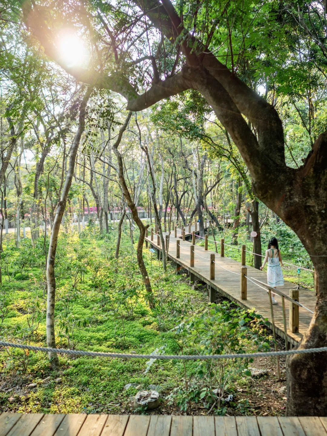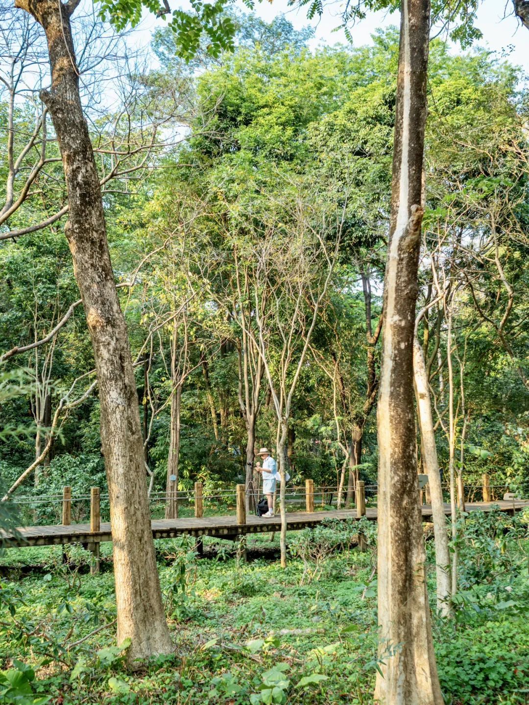 木栈道和林间小道值得一逛,步道两侧的树木高大,与藤蔓交织,枝叶翠色欲滴,漫步其间仿佛一脚踏入“童话森林”。
