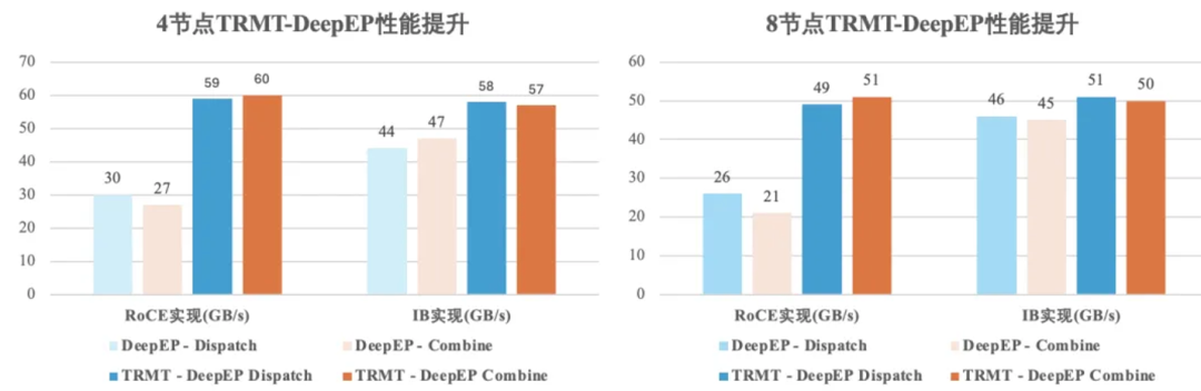 在腾讯的技术优化下,DeepEP不仅在RoCE网络实现性能翻倍,“反哺”到IB(InfiniBand)网络时更使原有通信效率再提升30%。