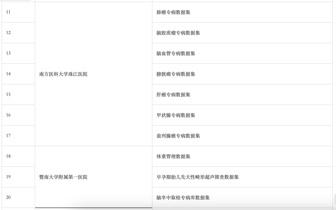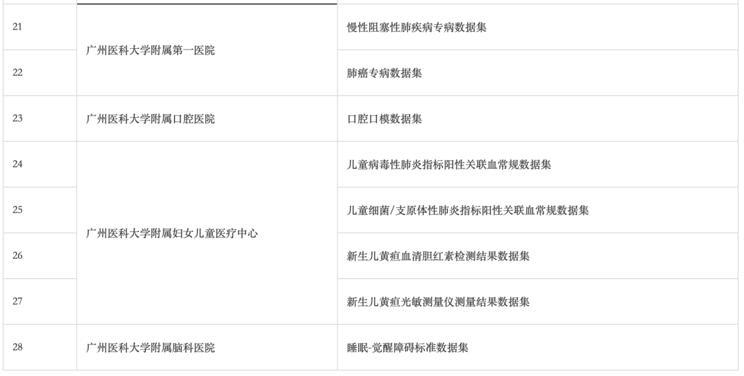 今天发布的广州卫生健康行业可信数据空间首批系列成果,包括儿童肺炎常用感染指标分布图谱、内分泌糖尿病临床试验方案患者入排统计等5个数据产品,脑血管病专病、肝癌专病、脑梗死专病、基层老年人体重指标数据集等28个高质量数据集(名单)。