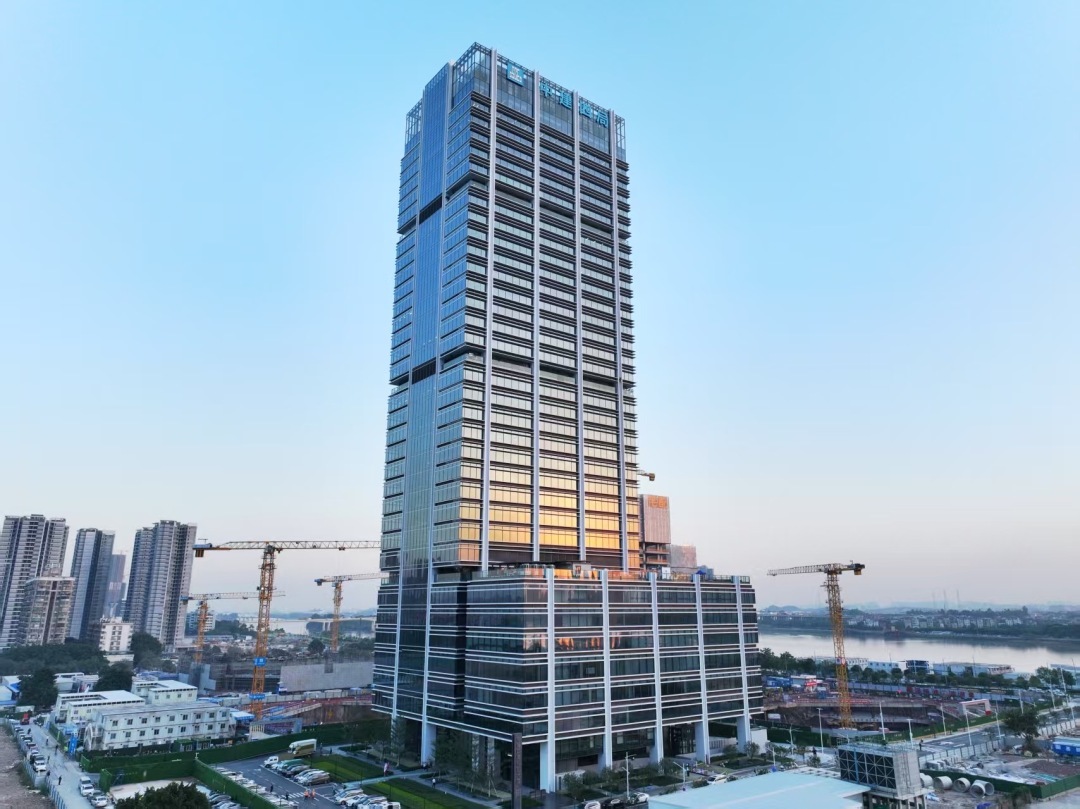 紧邻广州南站的广州环球贸易广场(C区5号地块总承包工程),承建单位中建四局创新应用自主研发的云端建造工厂、智能建筑机器人、数字建造管控平台等众多智能建造“黑科技”。云端建造工厂首次实现近3000平方米“核心筒+外框”全覆盖钢平台,配备自动开合雨棚、喷雾降尘系统及通风装置,夏季作业面温度降低10℃以上,小雨天气仍可正常施工,有效改善工人的作业环境。云端建造工厂配备多款智能机器人,施工效率提升30%,预计整体工期缩短约10%。