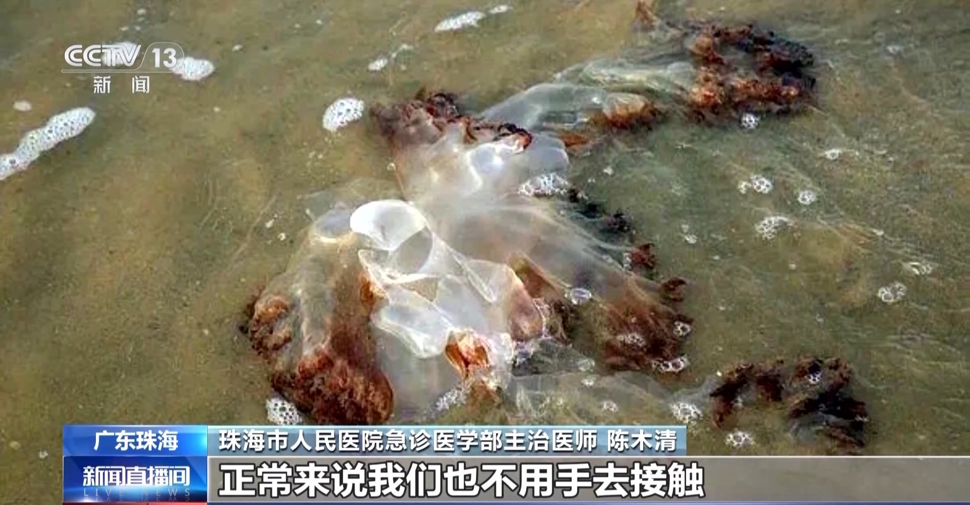 随着夏季来临,水上活动增多。近期,有游客在广东珠海横石基沙滩、木头冲沙滩等地发现了一些像塑料袋一样的物体,很多人还会用手触摸。其实这些“不速之客”是水母。医生也提醒:水母有毒,千万别碰!