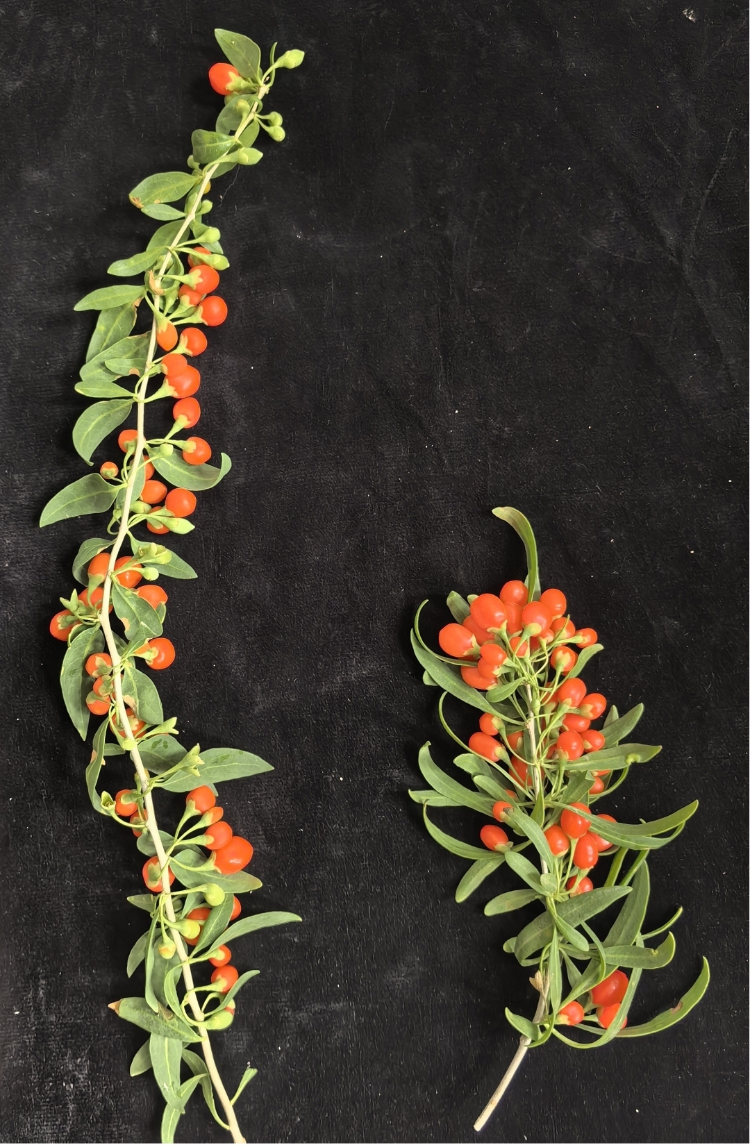 ▲“中科皇杞1号”与传统制干品种“宁杞1号”