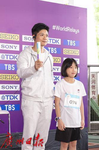 小朋友把最后接力棒传给苏炳添。