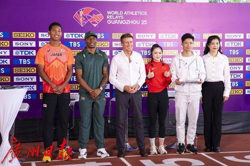 5月9日,2025年世界田联接力赛广州站在天河体育中心田径副场举行赛前新闻发布会, 世界田联主席塞巴斯蒂安·科、广州市体育局局长谭爱英、暨南大学体育学院院长苏炳添出席,畅谈了即将到来的比赛和美丽的广州。