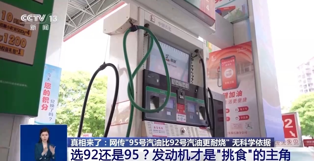中石化石油化工科学研究院有限公司第十九研究室主任 杨鹤:简单来算一笔账,今天的95号汽油的北京市的市场价是7块5毛8每升,92号汽油是7块1每升,这里面每升差价就是4毛8。现在正常一辆车的平均百公里油耗是10升,如果从价格上来说,你加了95号汽油就多花了4块8毛钱。从经济性上来说,你加不同的油品,它的燃油的经济性可能相差在1%以内,也就是在整个油耗里,你可能也就省了不到一块钱(七毛五),最后可能还多花了3块8。