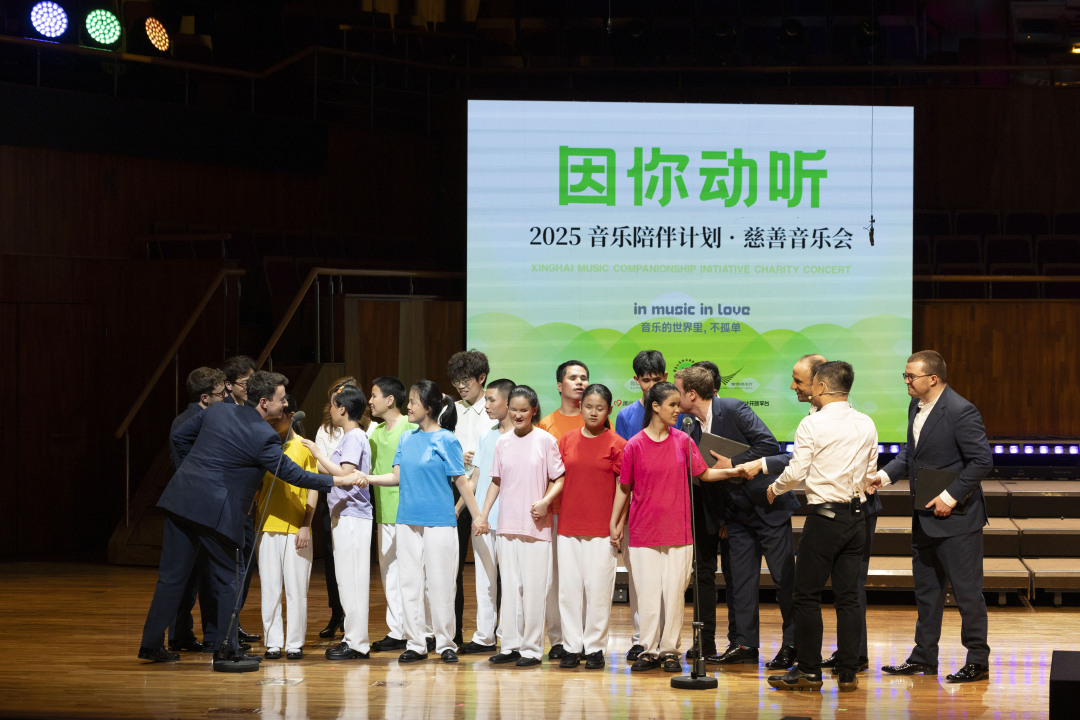 5月7日晚,星海音乐厅内暖意融融,2025“因你动听”音乐陪伴计划·慈善音乐会正在温情上演。来自外来务工子女学校、特殊学校、福利院的孩子们,在艺术导师的带领下,与一众国际大奖特邀嘉宾同台表演,歌唱、舞动、演奏,用音乐表达他们的快乐,展示他们的成长。
