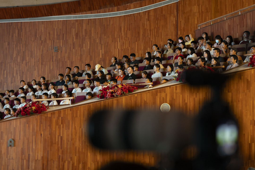 而广州市社会福利院附属特殊教育学校是十五年一贯制学校,“追光艺术团”是该院专为院内孤残儿童打造的综合性文化艺术学习展示平台。自2024年与音乐陪伴计划携手合作以来,师生们多次受邀走进音乐厅,沉浸式地欣赏艺术。在开场秀中,他们携手亲子剧演员林嘉敏,演绎星海音乐厅出品的亲子剧《小蒲公英奇妙之旅》主题曲《一天天长大》,带来一片欢声笑语。