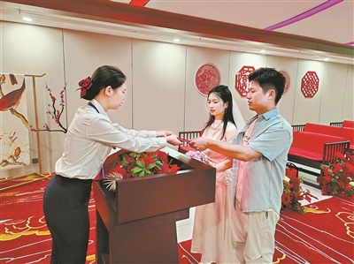 不少新人表示,一方面婚姻登记手续越来越便利,这是顺应时代发展的需要,另一方面,婚姻家庭辅导室等多样化的引导服务也使得年轻人更注重用心经营家庭关系。