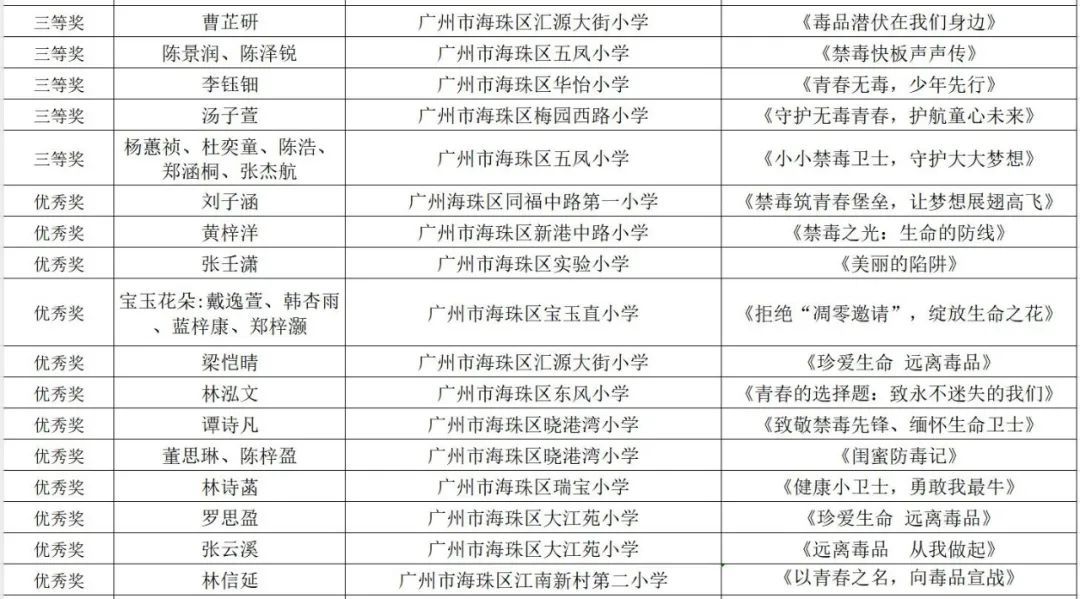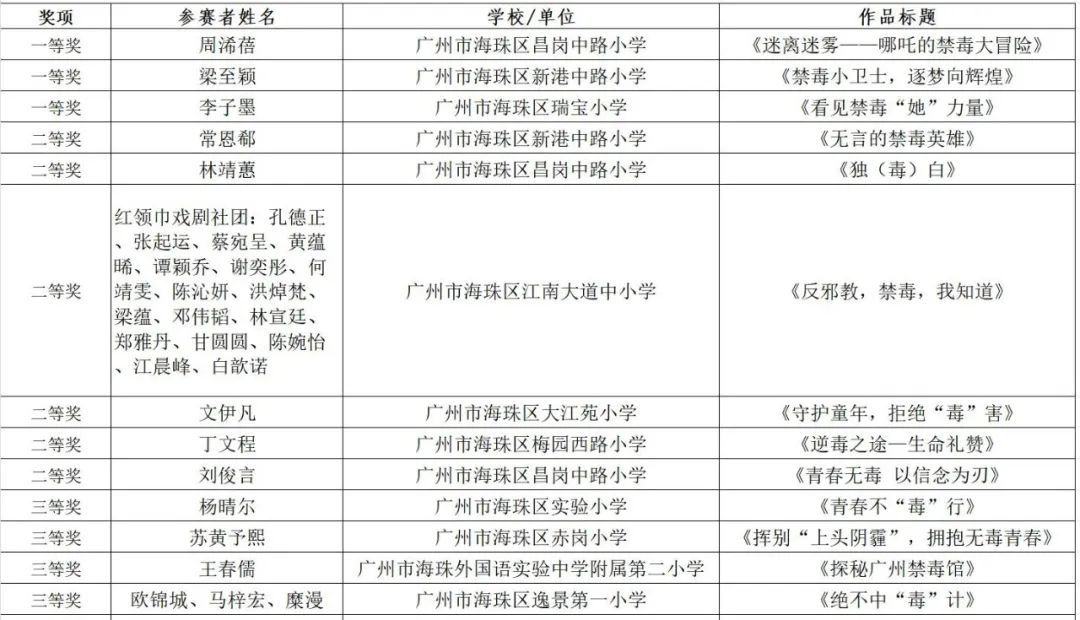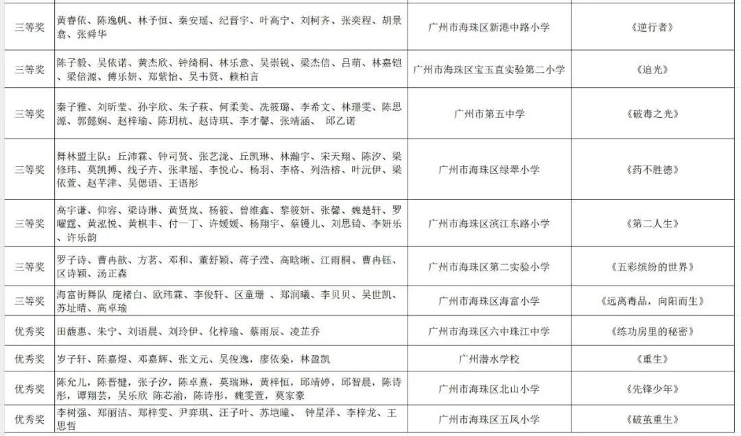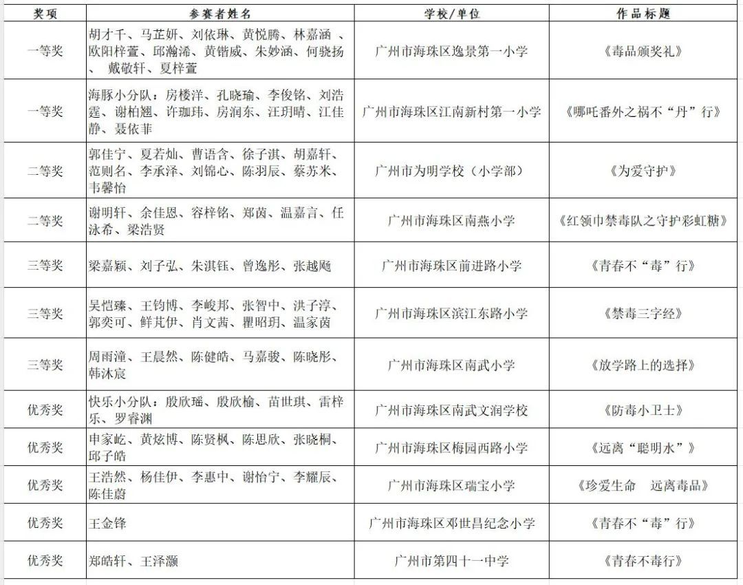 情景剧组的比赛同样引人入胜。江南新村第一小学的同学们带来《哪吒番外之祸不“丹”行》,以生动的剧情传递禁毒理念。逸景第一小学、广州市为明学校(小学部)等学校的队伍也各展风采,用幽默诙谐的语言和引人入胜的剧情,让观众深刻体会到毒品的危害性。