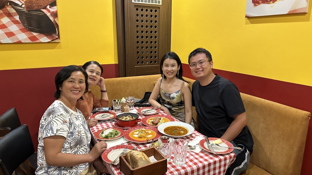 夫妻俩与两位妈妈在匈牙利布达佩斯品尝当地美食