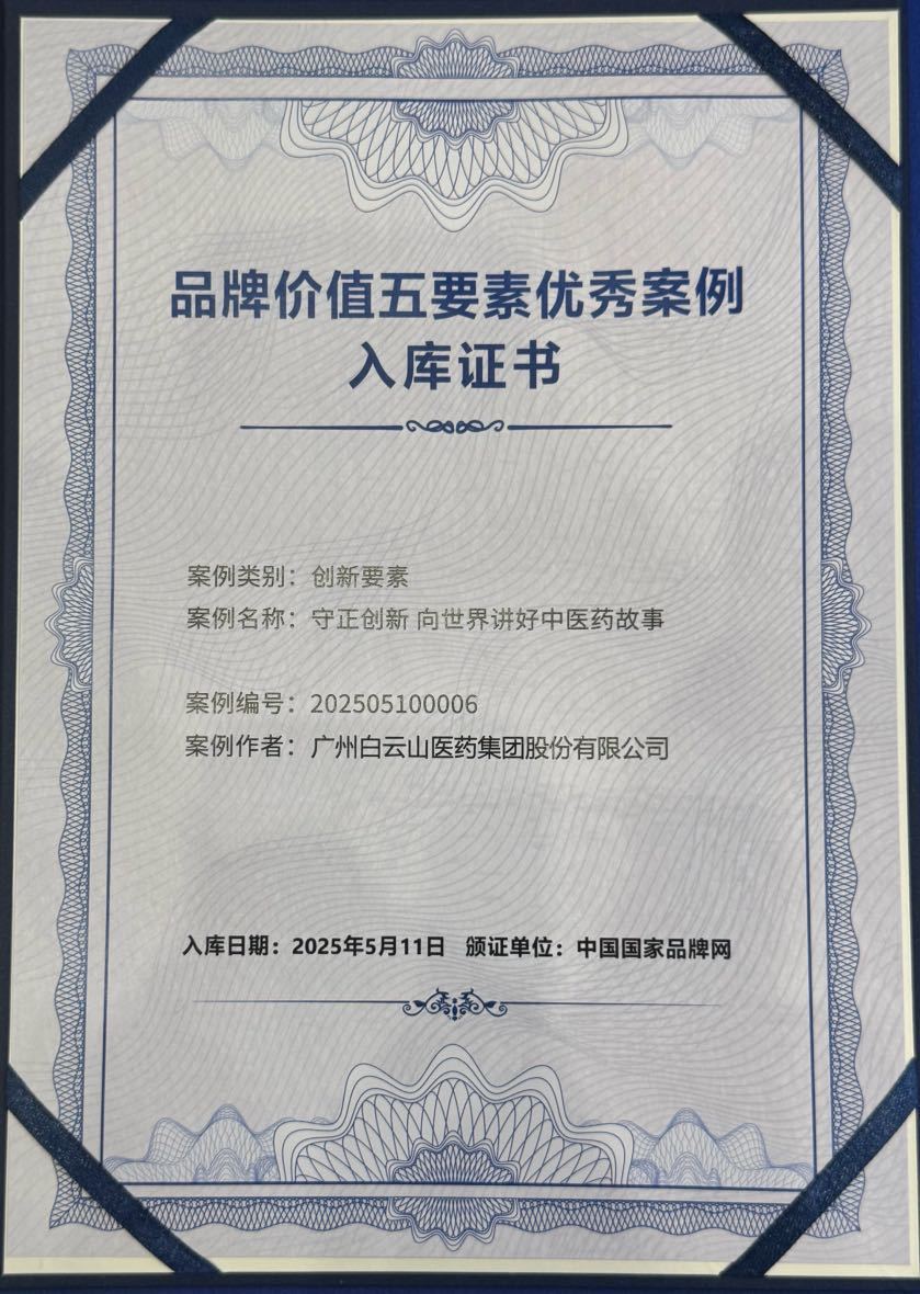 据了解,中国国家品牌网作为我国品牌领域权威信息发布平台还编制了“有形资产、无形资产、质量、服务、创新”品牌价值五要素案例,广药白云山《守正创新 为世界讲好中医药故事》品牌案例入选创新要素优秀案例。