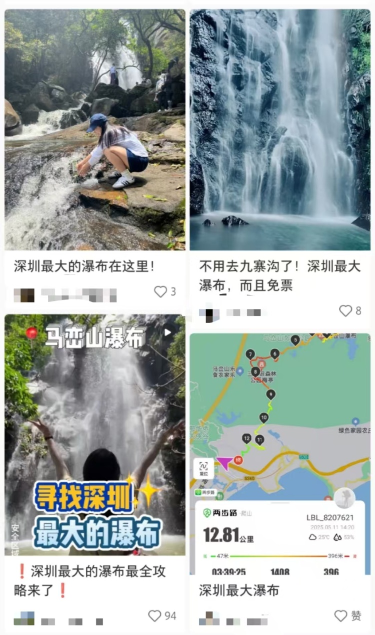 5月12日,深圳市民小马(化名)告诉上游新闻记者,自己4月23日前往马峦山郊野公园游玩,也是第一次到这去,发现路边有“深圳最大的瀑布”的牌子。他们很好奇“深圳最大的瀑布”究竟有多大,结果发现瀑布水量很小,宛如一条小山涧,跟“深圳最大瀑布”的说法有较大反差,就拍摄了一段视频发到网上。