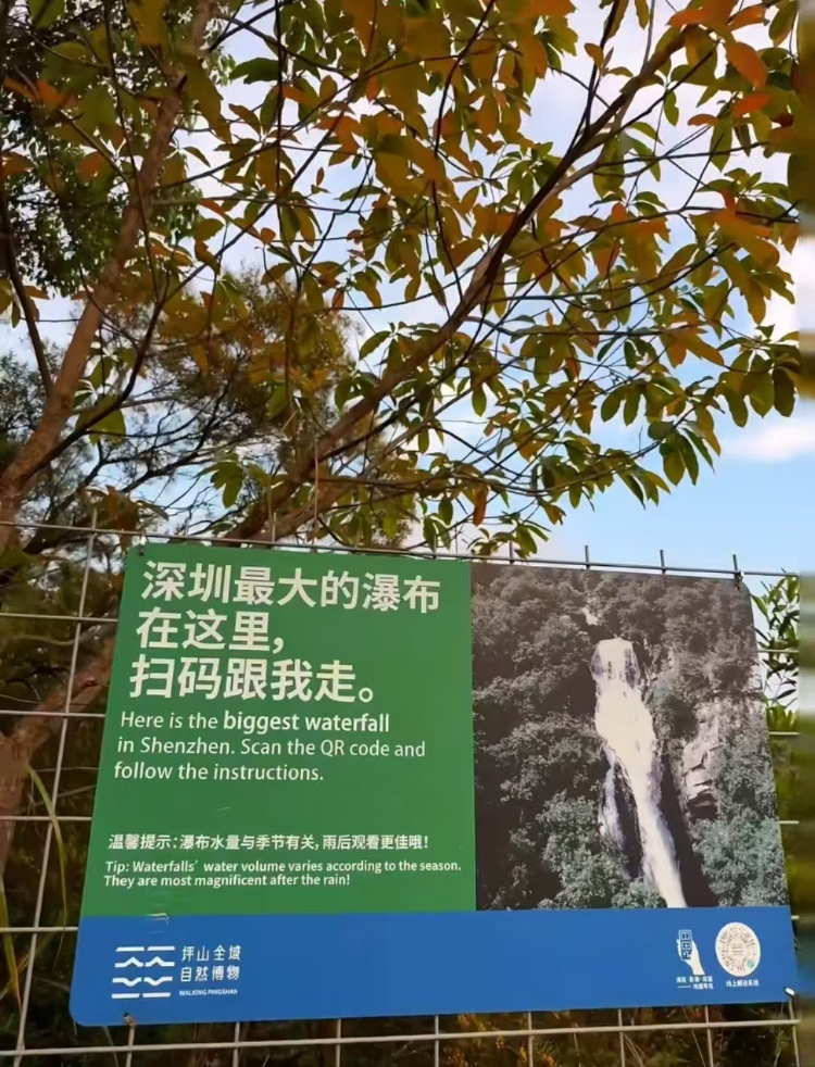 网友拍摄的写有“深圳最大的瀑布”字样的标识牌。受访者供图