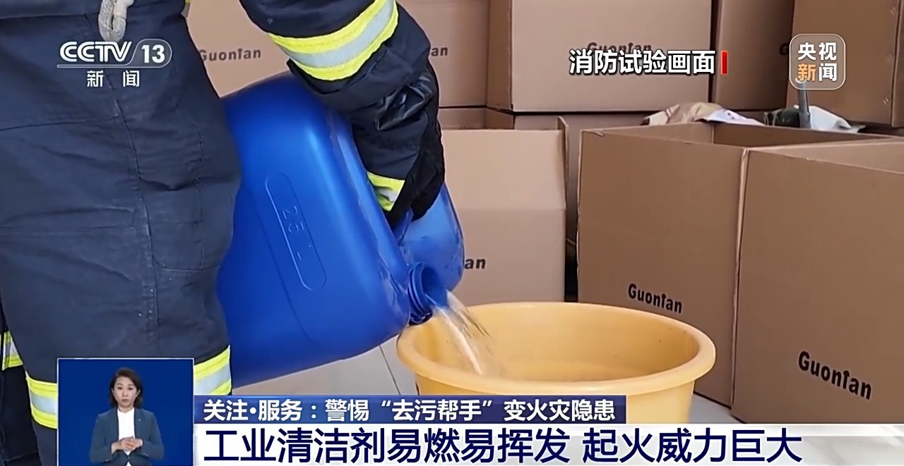 消防员解释,工业清洁剂火灾的发生,通常与清洁剂所含成分及大面积挥发有关。