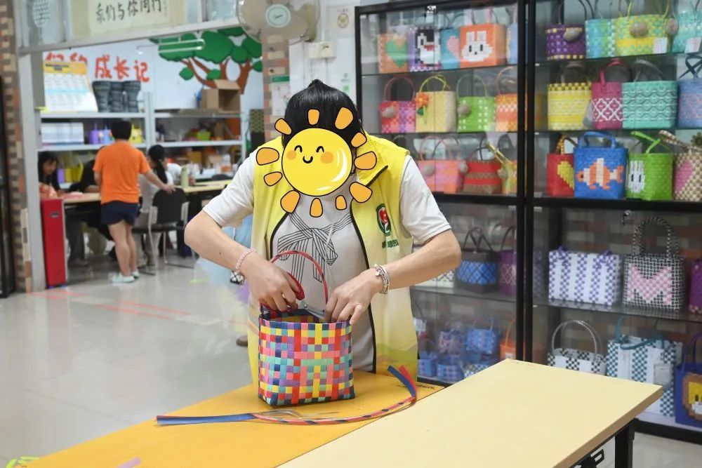 无论是镇上的文化节,还是化龙公园的周末活动,工疗站的编织篮摊位总是人群中最温暖的存在。居民们常被琳琅满目的编织篮吸引驻足——卡通图案的菜篮、复古花纹的收纳筐、软管包边的时尚手挽包……许多街坊不仅自己购买,还会推荐给亲友:“这些篮子全是手工编织的,又结实又好看,而且还能助力公益!”