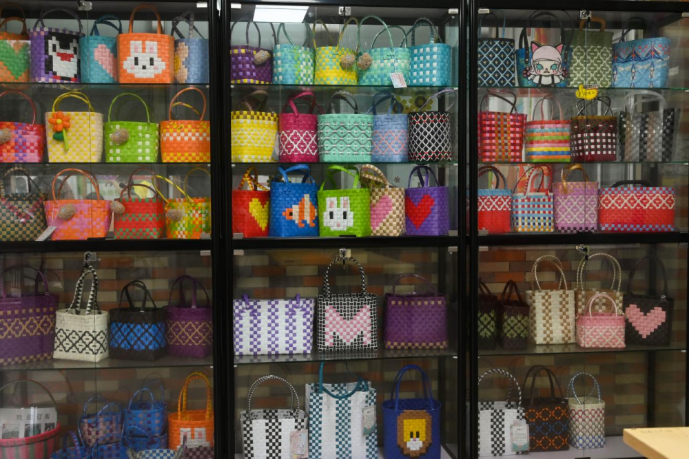 公益摊位上,手工编织篮受街坊欢迎