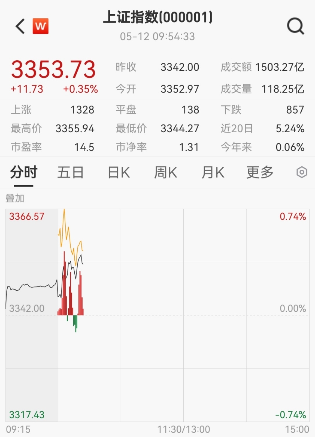 5月12日,中美经贸高层会谈达成重要共识,并取得实质性进展。受利好消息影响,周一上证指数高开0.33%,深证成指涨0.92%,创业板指涨1.55%。全市场超4200只个股上涨。