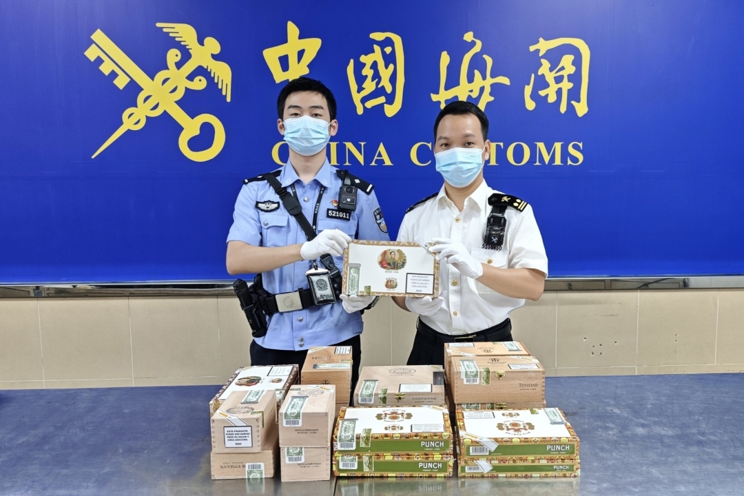 近日,黄埔海关所属太平海关联合缉私分局在入境旅检渠道查获旅客违规携带雪茄424支。