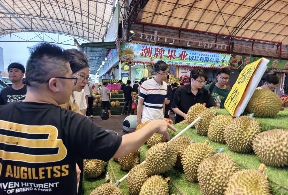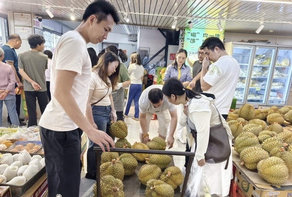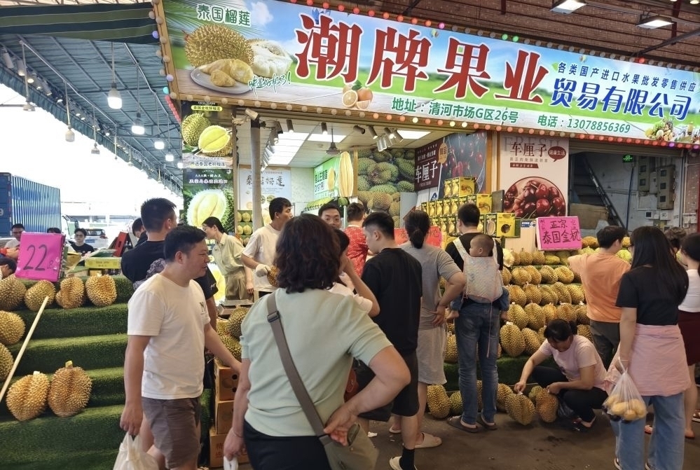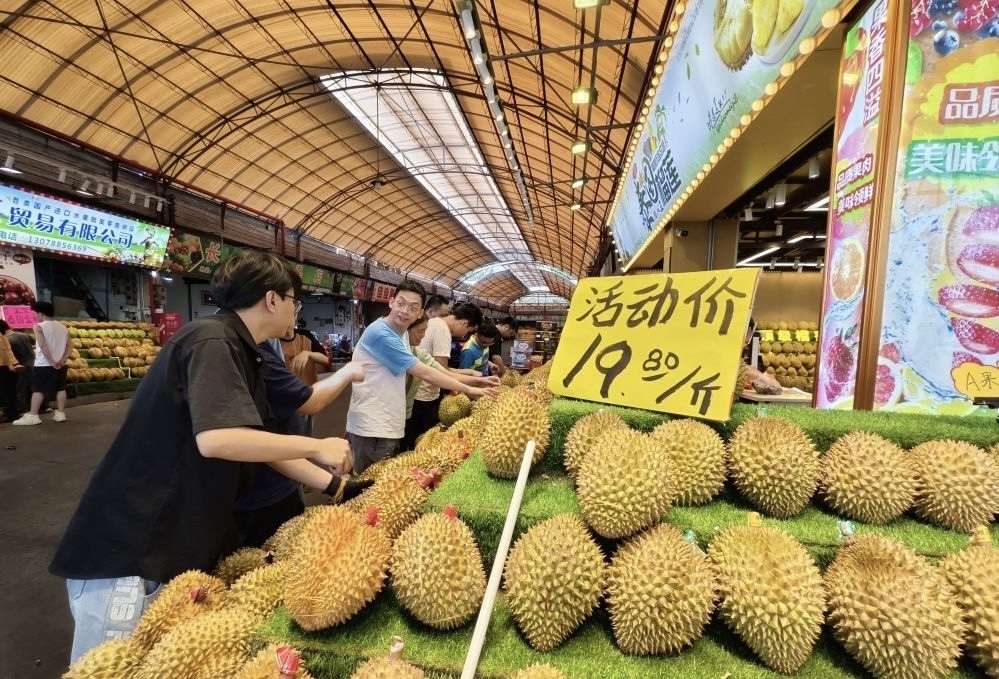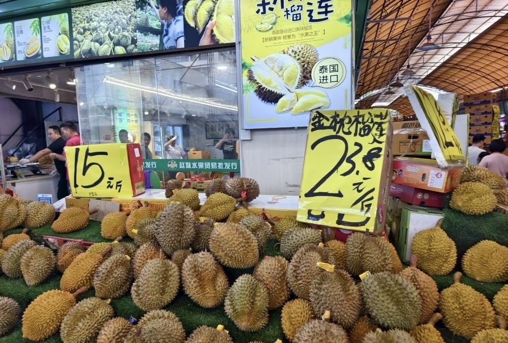 近日,随着总重1600余吨的泰国金枕、甲仑、托曼尼、青尼等多个品种的榴莲,从广州南沙口岸运往粤港澳大湾区各地水果批发市场和超市,榴莲价格明显回落。