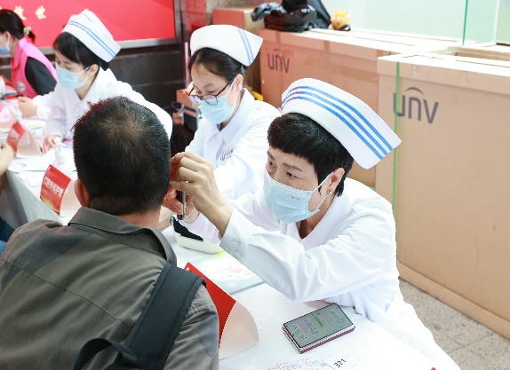 在骨科及耳鼻咽喉科护理专场,现场的人们早早就排起了长队。测量骨密度、如何做好骨骼健康的管理、如何缓解疼痛、如何护理过敏性鼻炎等都有专业护士解答和帮助。