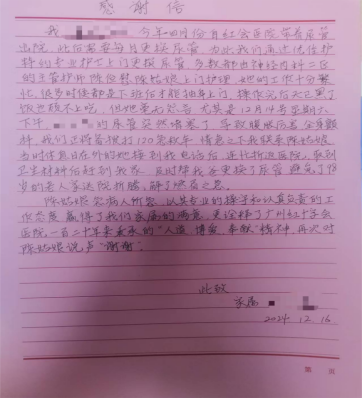 今天是“护士节”,高奶奶的女儿专程为陈护士送上感谢信。