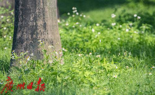 5月12日,广州天气晴朗,阳光一扫前段时间雷雨天气带来的潮气。珠江边的绿地上,盛开的野花招蜂引蝶,形成一幅幅生机勃勃的画面。